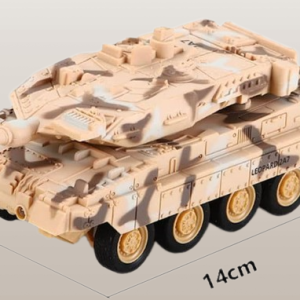 Grâce à sa construction, le char convient pour des voyages en intérieur ainsi que pour l’extérieur sur l’asphalte ou des surfaces similaires lisses et sèches. Ce véhicule de combat est entièrement pré-assemblé. Il suffit d’insérer les piles nécessaires pour la télécommande et la bataille peut commencer.